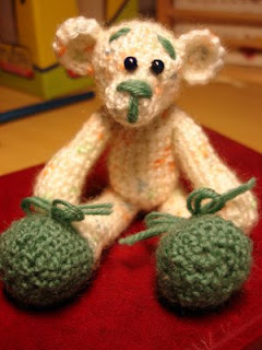 - Für das Bündchen 32 Maschen auf 2 Nadeln anschlagen, eine Nadel rausziehen und auf ein Nadelspiel verteilen (je 8 Maschen auf eine Nadel), im Bündchenmuster 2 M rechts und 2 M links stricken. Das ungefähr 15 Runden (Jeder kann das Bündchen so lang stricken, wie er es möchte.)