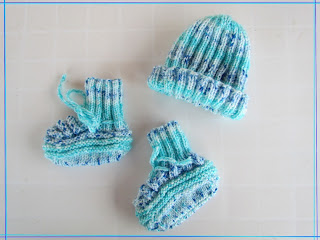 Zwar schon im Dezember fertig geworden, aber verdienen es doch hier gezeigt zu werden. Die Schühchen sind von mir, die Mütze hab ich zusammen mit einer Freundin gemacht. Da brachte ich ihr bei, wie man rechte und linke Maschen strickt. Das war das erste Mal, dass sie überhaupt strickte. Die Fehler hab ich drin gelassen. Ich find's süß.. :-)