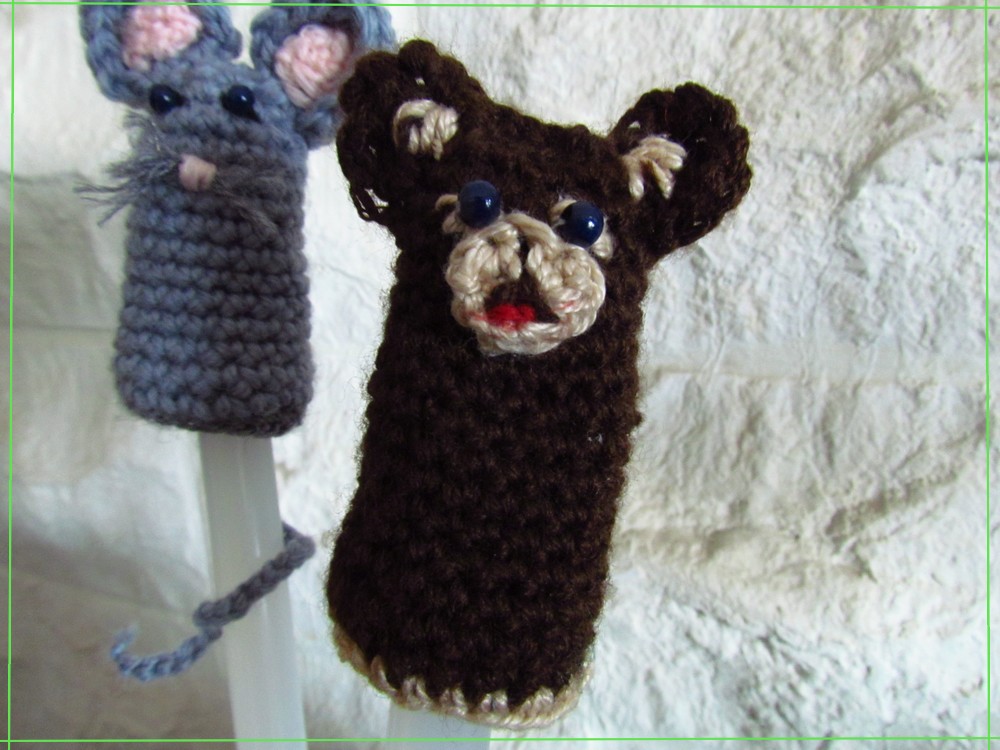 Gehäkelte Fingerpuppen als Geschenk für einen kleinen Jungen der gerne Theater spielt.